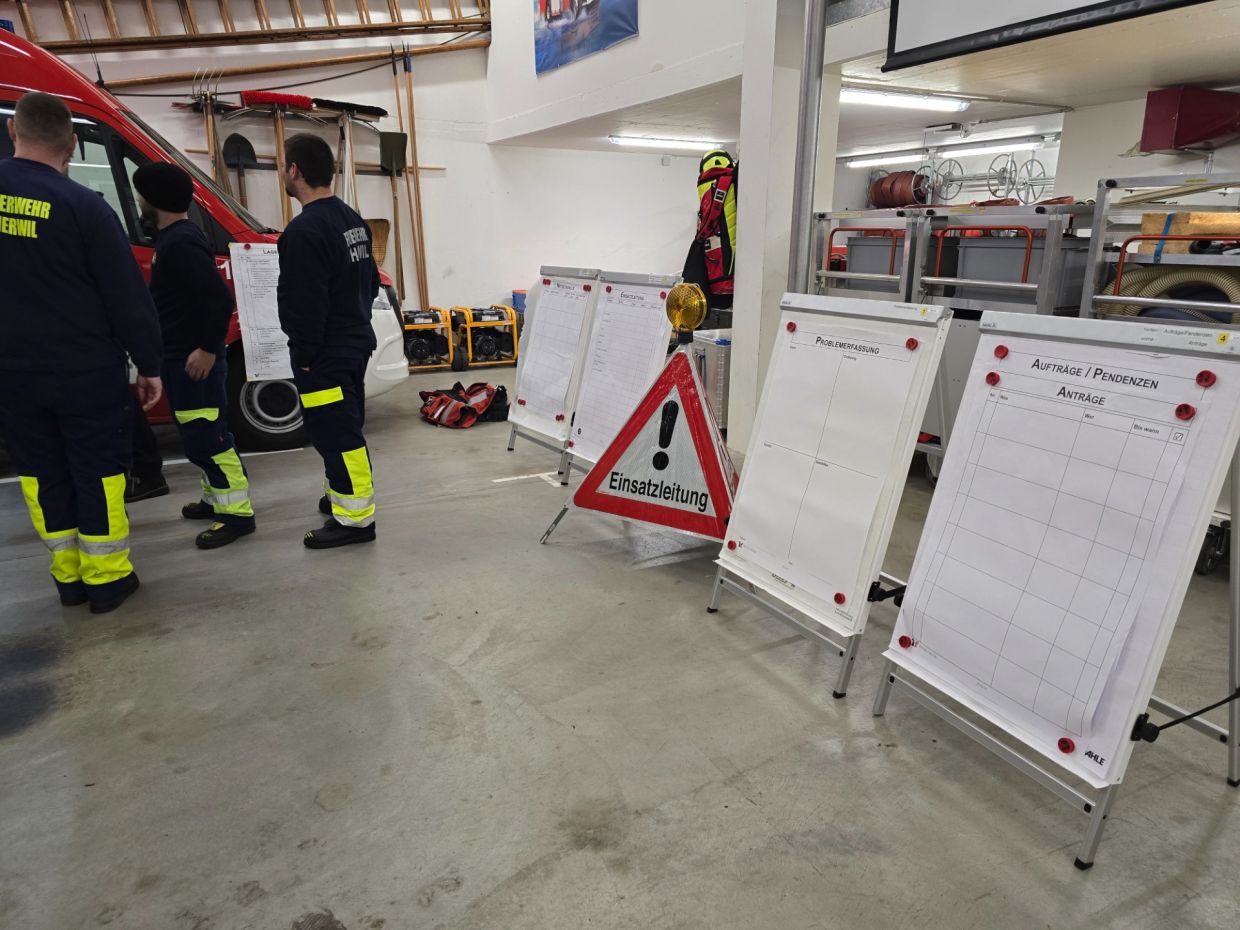 Danach haben beide Feuerwehren interne Themen besprochen. Für Therwil hiess es die Lektionsplanung 2025 sowie wichtige Änderungen in diesem Jahr zu besprechen.