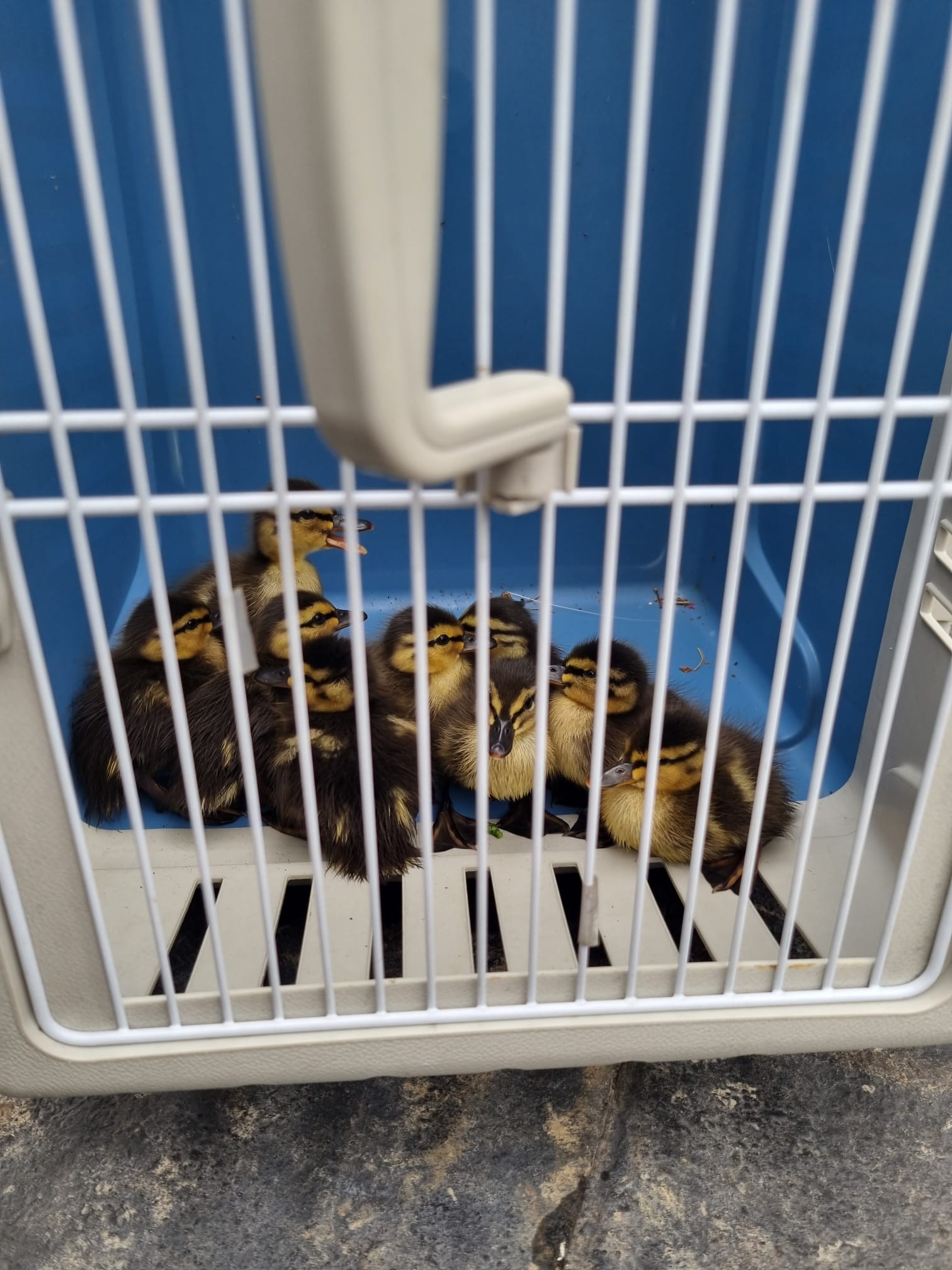 Die Entenfamilie hat sich auf dem Denner-Dach verirrt und die Entenküken mussten mit dem Hubretter der Stützpunktfeuerwehr Reinach geretter werden. Die Küken konnten am Bach erfolgreich der Entenmutter übergeben werden.